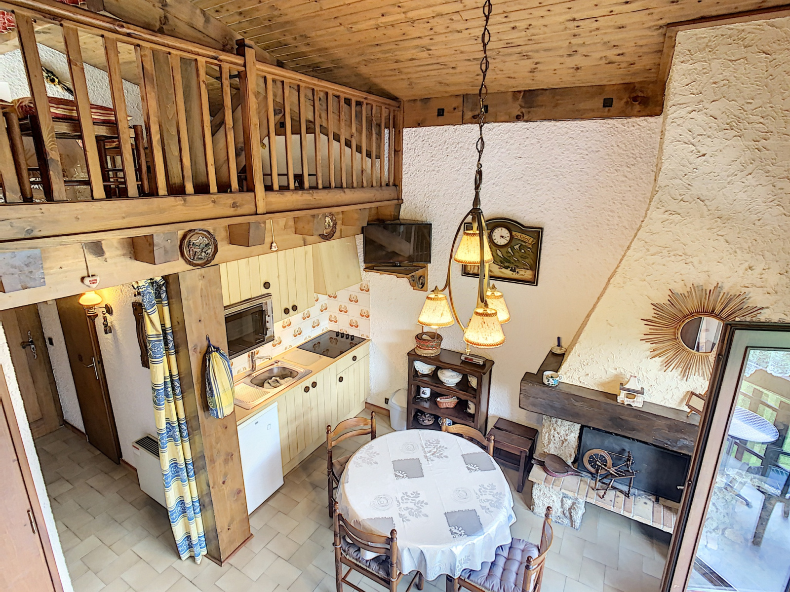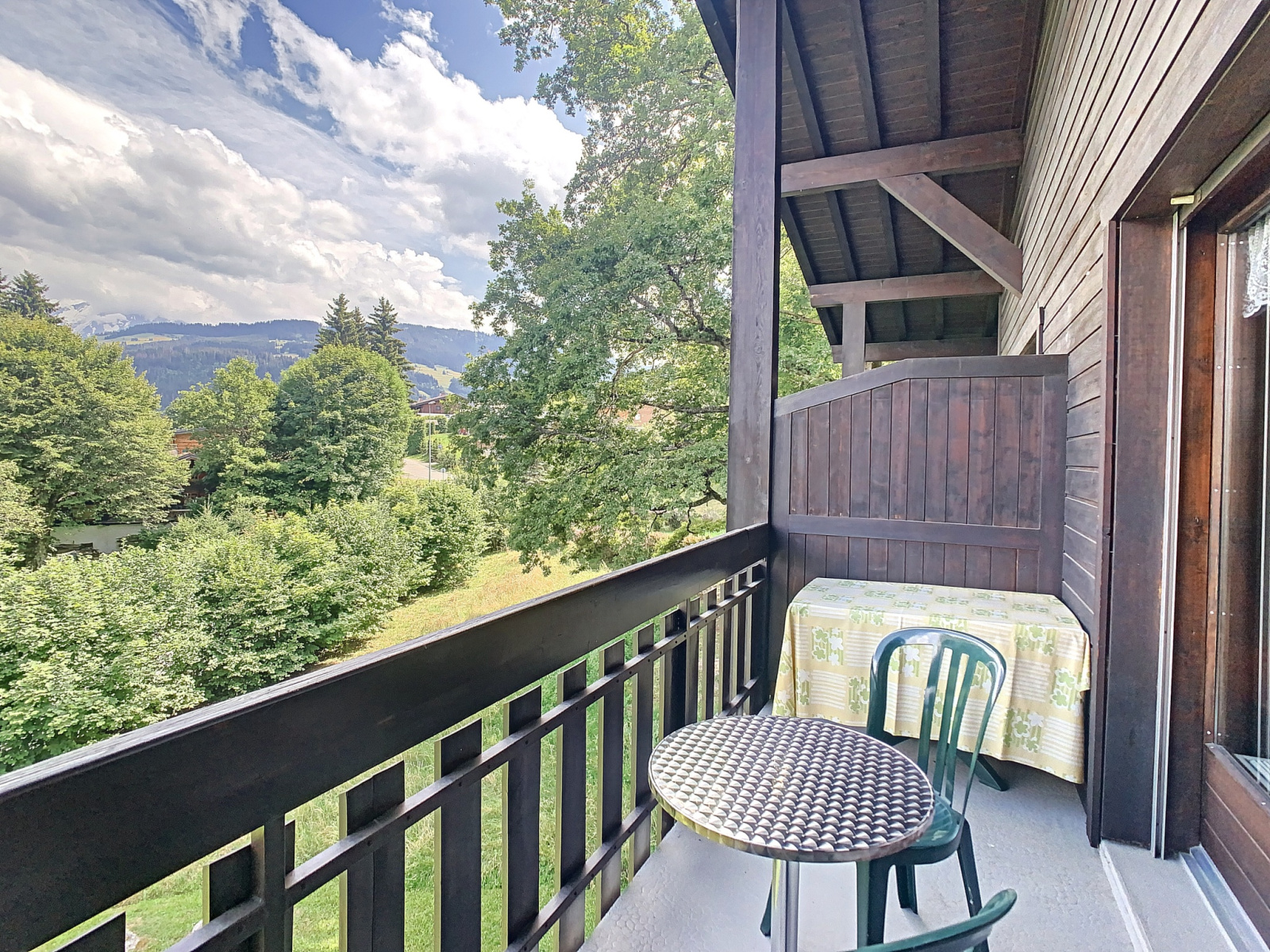 Dans une résidence située à 1,4 Km de Combloux, duplex d'environ 35 m2 composé de : Une entrée avec coin montagne deux lits superposés (pour enfant), salle de douche et WC, séjour, coin cuisine équipé avec plaques, four, frigo, balcon face au Mont Blanc. A l'étage : mezzanine mansardée (<1m80) avec 1 lit double + 1 lit simple (enfant).