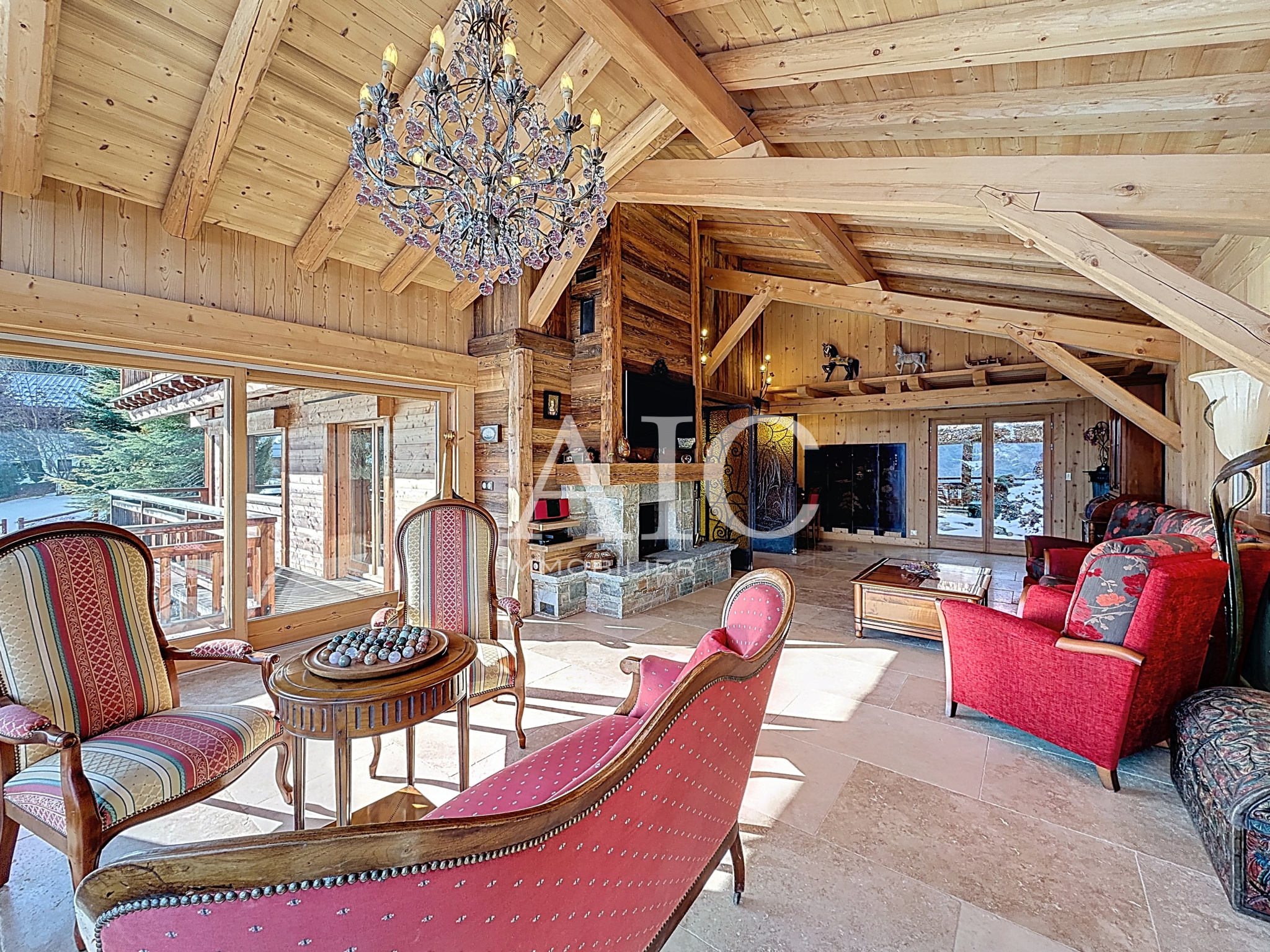 Dans un environnement calme et préservé, ce chalet d’exception d’environ 240 m², implanté sur une superbe parcelle arborée de 2 300 m², offre une vue imprenable et sans vis-à-vis sur le massif du Mont-Blanc. Réparti sur trois niveaux, il séduit par la qualité de ses prestations, ses beaux volumes baignés de lumière et son vaste espace de vie ouvert, sublimé par de larges baies vitrées plein Mont-Blanc et une élégante cheminée double foyer. L’ensemble s’ouvre sur une grande terrasse et un jardin paysager, offrant un panorama spectaculaire en toute saison. Le chalet dispose de six chambres, de plusieurs salles de bains et d’un espace détente aux vues remarquables, complétés par un grand garage, buanderie, cave et nombreux rangements. Un bien rare et confidentiel, pensé pour un art de vivre unique face au Mont-Blanc.