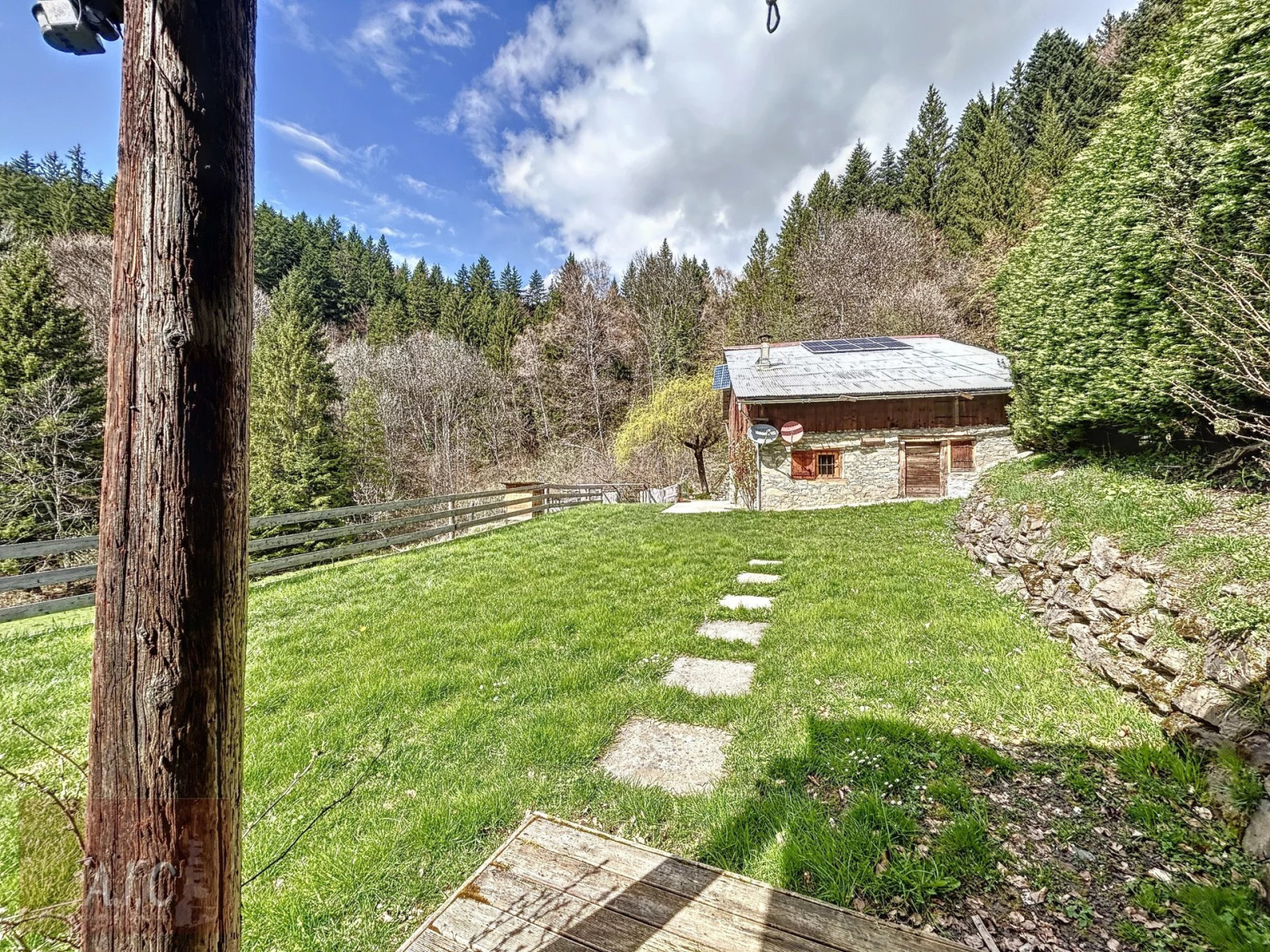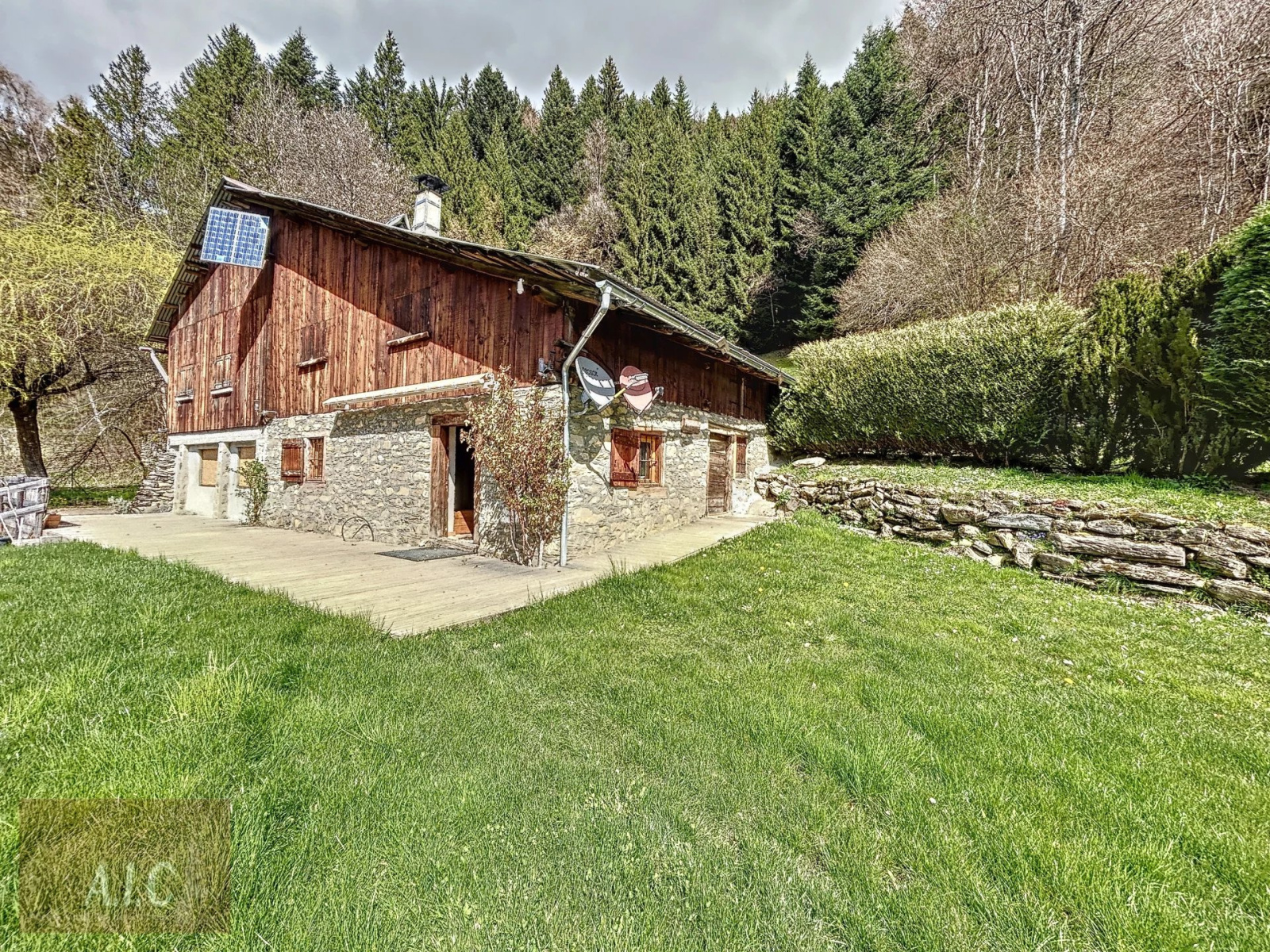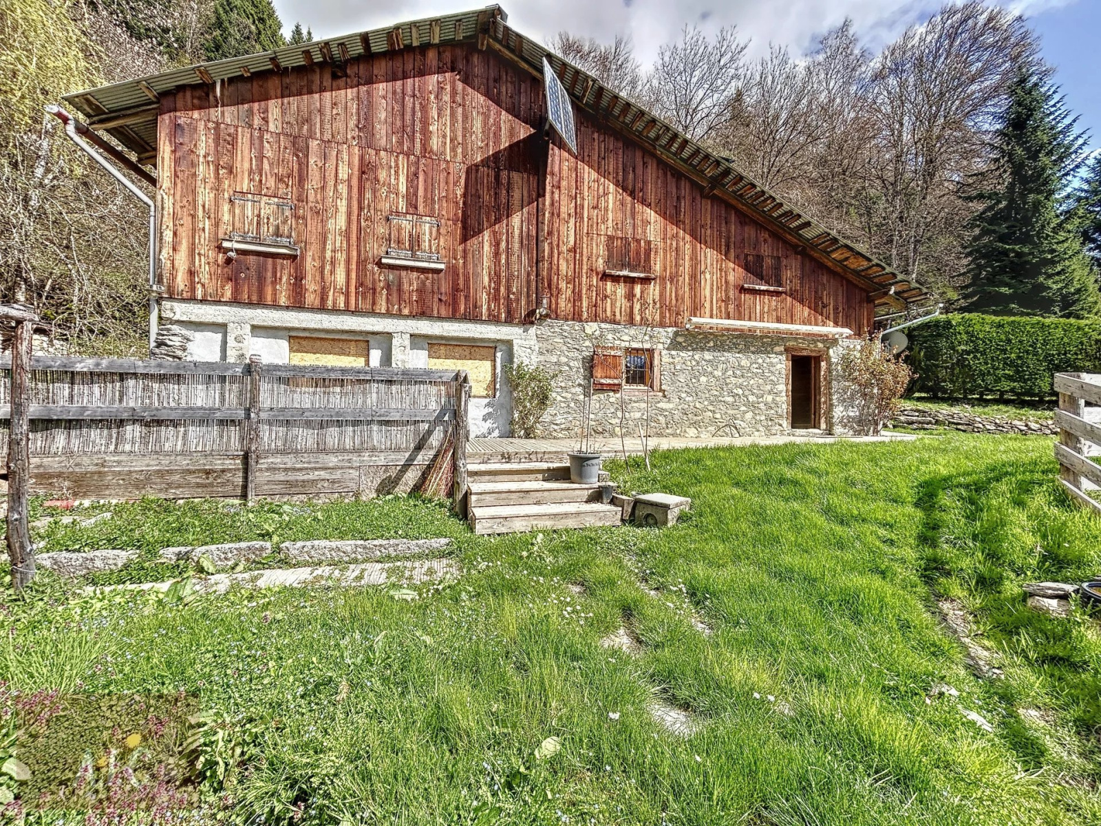VENDU. Rare à la vente, alpage de montagne de 281.37 m² sur 1274 m² de terrain d'agrément et vendu avec 8152 m² de terre principalement des bois sur les hauteurs de Sallanches. Accès uniquement par chemin forestier avec accès limité en saison hivernale. Electricité par panneaux solaires et groupe électrogène, eau avec captage d'une source (Pas de réseaux sec et humide).