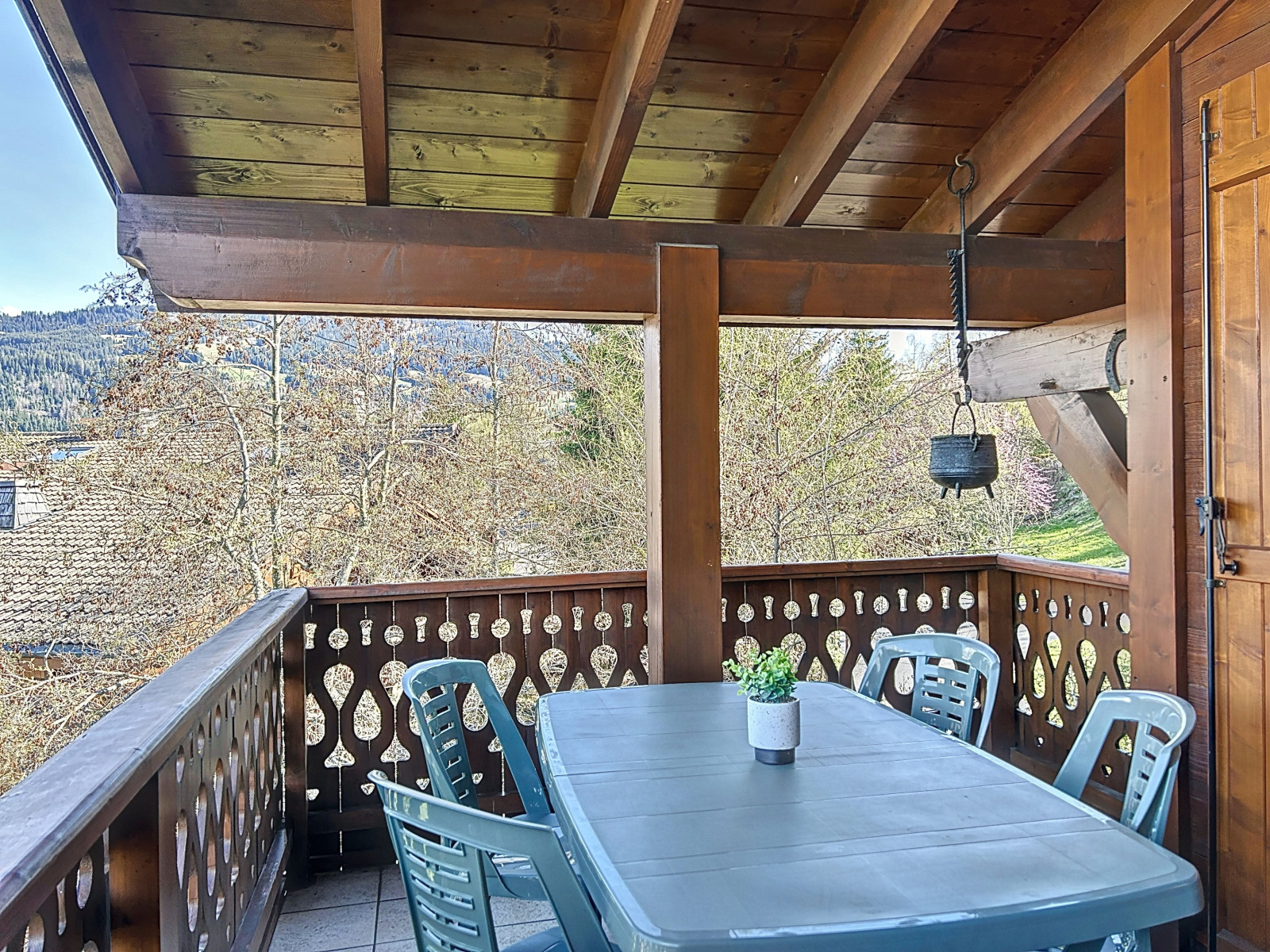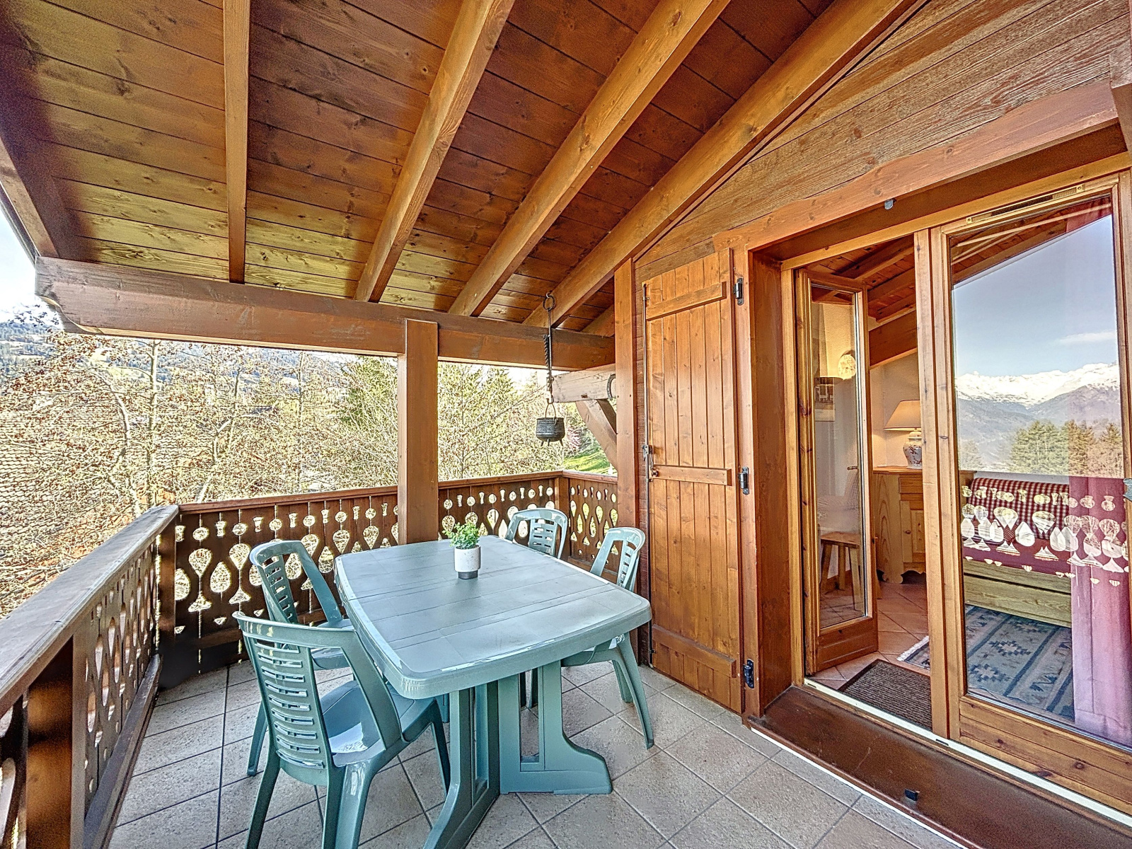 Bel appartement au 1er étage avec très belle vue Mont-Blanc, situé dans une petite copropriété à proximité du ski bus et à 900 mètres du village de Combloux. Il se compose d'une entrée, placard, une salle de bain, un wc indépendant, une chambre avec un lit de deux personnes (140x200). Une pièce de vie avec cuisine ouverte tout équipée (four, frigo, lave-vaisselle, lave-linge, plaque vitrocéramique) , coin repas, coin salon avec un lit gigogne (2x90) donnant accès sur un balcon/terrasse. Un garage et un casier à skis.